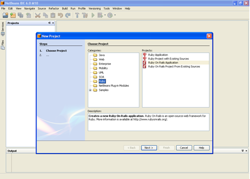 Gittikçe yaygınlaşan Ruby ve Ruby on Rails frameworku için desteğini sürdüren Sun, Netbeans’in yeni sürümlerinde bu dillere yer vermeye başladı. Özellikle 6.0 M10 ile birlikte IDE ihtiyacını büyük ölçüde karşılamaya başladı, tabii javanın yavaşlığına katlanabiliyorsanız :)