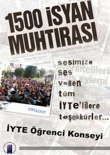 Eğer otobüsün gelmeyeceği belli olursa okulun açıldığı ilk cuma yani 6 Ekim 2007 günü valilikten gerekli izni alıp eylemimizi yapalım. Ancak her ne kadar katılımın yoğun olacağı söylense de 13 Mayıs 2007 Cumhuriyet Mitingi’ni de hiç unutmadım. Bilenler bilir, bir körüklü otobüs dolusu insanla yola çıkıp bir kısmının indikten sonra metroya yönelip gitmesini… Neyse bu sefer de umutsuz olmamalı, tüm İYTE’nin destek vereceğini hayal etmeliyim sanırım.”