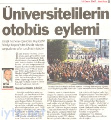 dedik. 9- Belediye devamlı sözler verdi, bizi atlattı, kandırmaya kalktı. 10- Eylül’ün son günlerinde açılış töreniyle beraber kütüphane açılışının da yapılacağı söylendi, belki başkan gelebilir dendi, konsey adına ben konuşacaktım. 11- Başkanın geliş haberi bizi umutlandırdı, bu iyiye işaretti, başkan iyi haber verecekti… 12- Konuşmayı ona göre hazırladık, içeriğini yazma gereğini duymuyorum zaten forumda bulabilirsiniz… 13- Başkanın, bakanın, valinin gözünün içine bakarak otobüs istiyoruz dedik, başkan başını salladı. Artık “tabii vereceğiz” anlamında mı yoksa “daha çok beklersiniz” anlamında mı dedi çözemedim. 14- İşlem tamam sayılırdı, başkana gereken mesaj verilmişti, salonda alkış da talebimizi güçlendiriyor, meşrulaştırıyordu. 15- O hafta planladığımız eylemden vazgeçmiştik, ne de olsa başkan ayağımıza gelmiş, bizi dinlemişti, bundan iyisi olamazdı. Kasımda artık otobüsümüz hazırdı. Son senemde en azından 3 yıldır yapmaya çalıştıklarımın karşılığı olarak otobüs hediye gibi gelecekti. 16- Ama işler hiç de iyi gitmiyordu, ses seda çıkmıyordu, başkanla tekrar görüşmek istedik. Aradık, randevu istedik vermediler. Aradık, randevu istedik vermediler. Aradık, randevu istedik vermediler. Aradık, randevu istedik vermediler. Aradık, randevu istedik vermediler. Aradık, randevu istedik vermediler. Aradık, randevu istedik vermediler. Aradık, randevu istedik vermediler. Aradık, randevu istedik vermediler. Aradık, randevu istedik vermediler. Aradık, randevu istedik vermediler. Aradık, randevu istedik vermediler. Aradık, randevu istedik vermediler. Aradık, randevu istedik vermediler. Aradık, randevu istedik vermediler. Aradık, randevu istedik vermediler… En sonunda basın danışmanını aradım, bizzat tehdit ettim, ya randevu verirsiniz ya da 1000 kişi ile kapıya dayanırız dedim. “Başkanın bilgisi dahilinde çalışmalarımız sürüyor” dedi. Metanetimizi kaybetmedik, bekledik, uğraştık, insanlar bize güvendi, çalışma zorundayız dedik, devam ettik. 17- Artık belediyeden kimse ile görüşemez olmuştuk, “Başkanın bilgisi dahilinde çalışmalarımız sürüyor” dendi hep. Sabır taşmıştı, eylem kaçınılmazdı… 18- Eylem için düğmeye bastık,gün 9 Kasım 2007 Cuma idi. Sağolsun Onur Adsay bu afişi hazırladı.