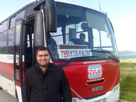 28- Araya kimleri koymadık ki, tanıdık bildikler, partililer hatta milletvekilleri… Bir tayyiple güle çıkmadık… 29- Benim görev sürem doldu, Gürhan devraldı, uğraşıyor ve hala belediye direniyor. Bir ara Mordoğan otobüsünün sayısını arttırıp İYTE’ye yönelttiler ama şimdi o da kalktı. O da şöyle gelişti: Belediye, yerleşkeye girmem diye tutturdu, sonuçta Rektörlüğün oradan kalkmaya başladı. Rahatına düşkün iyteliler de tıka basa dolmuşlara binebilmek için Mimarlığa koşarken Rektörlüğe gidip otobüse binmeye üşendiler. Neyse gelecek sene hayat neler gösterir kim bilir… En azından ben bir kere de olsa bu otobüsü mimarlıkta görüp aşağıdaki fotoğrafı çektirdim ya o da bana yeter ![]()